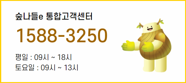 국립 자연 휴양림 전화 문의 : 1588-3250
