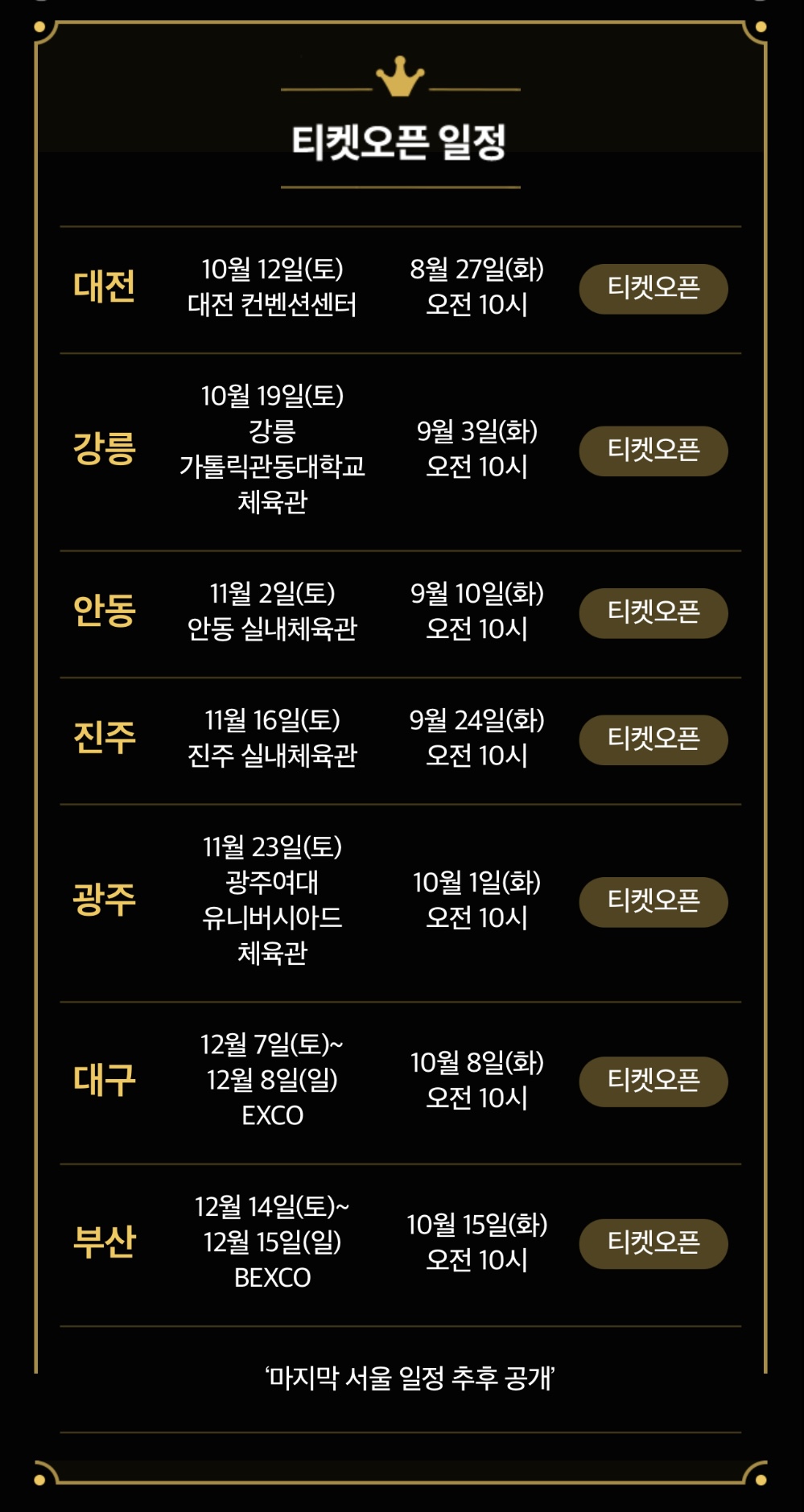마지막 서울 공연 일정은 아직 미공개 되었습니다.