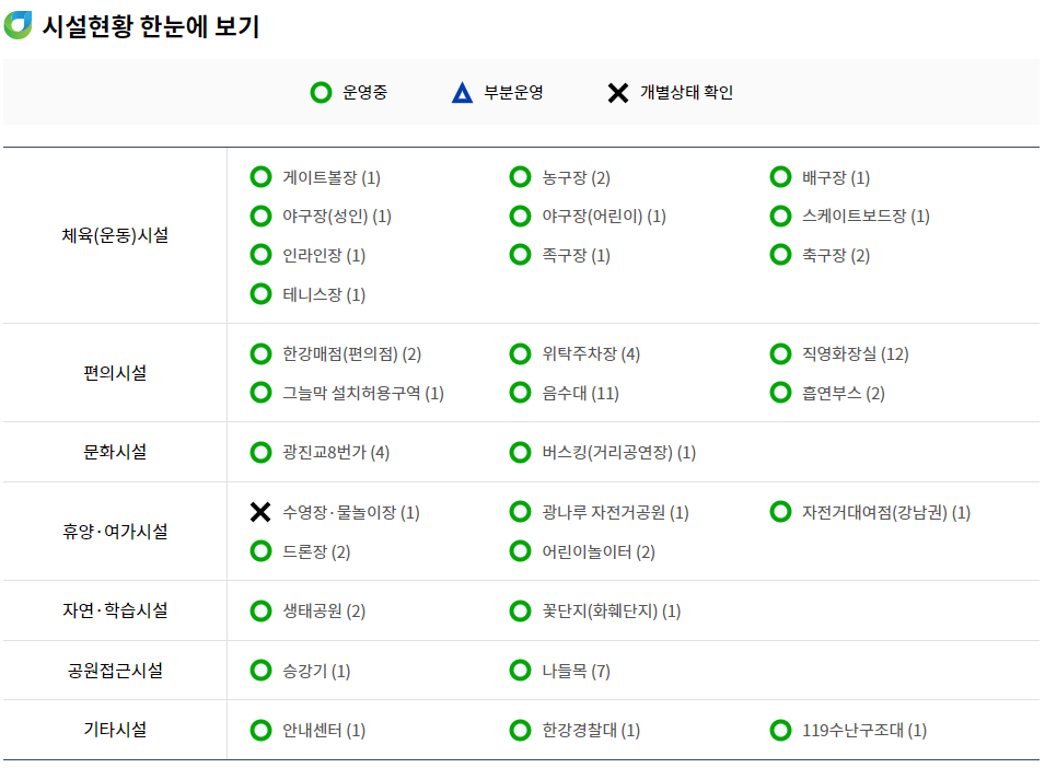 3. 광나루한강공원 시설 현황 한눈에 보기