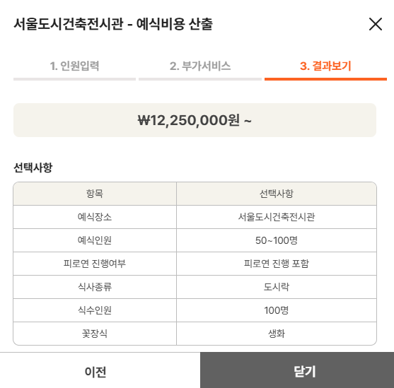 ♧ 서울도시건축전시관 - 예상비용 확인하기 \ 12,250,000원