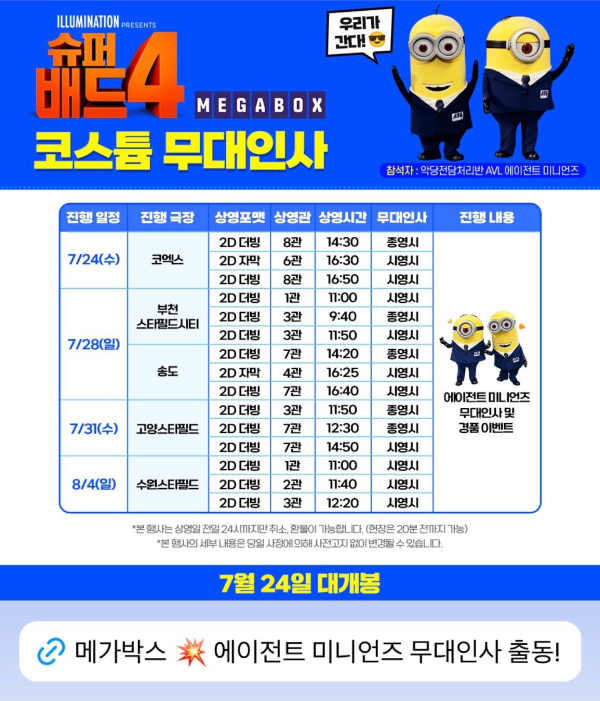 슈퍼배드4 미니언즈 메가박스 무대 인사일정