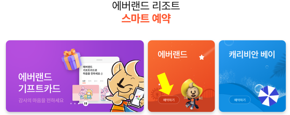 홈페이지접속 -> 가입하기 -> 스마트예약클릭 -> 에버랜드클릭