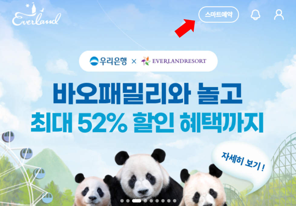 홈페이지접속 -> 가입하기 -> 스마트예약클릭 -> 에버랜드클릭
