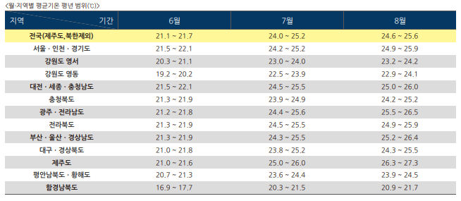 올여름 날씨 전망, 6월~8월 여름 날씨