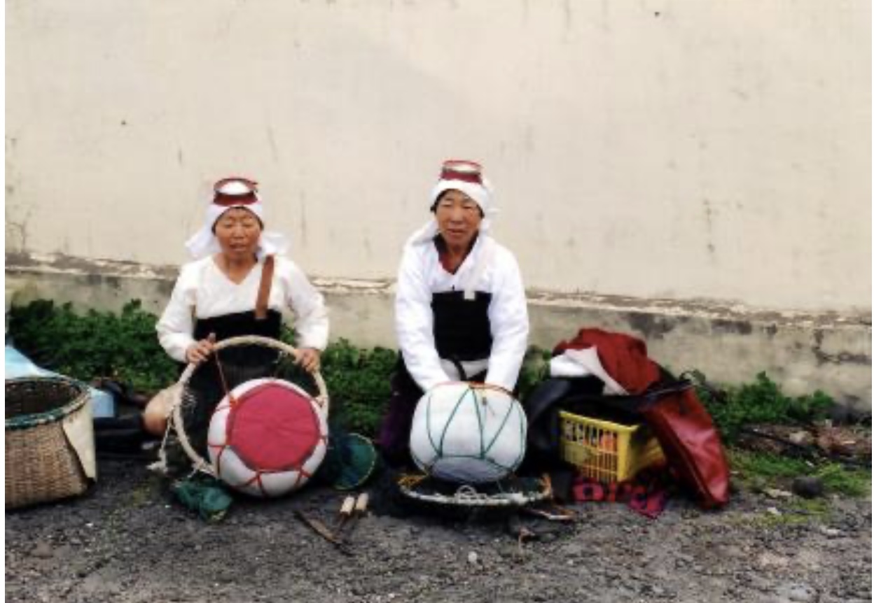 제주도에서 전해져 내려온 여성 해녀들의 어업 활동입니다. 해녀들은 특별한 장비 없이 물속에서 해산물을 채취하는 독특한 방식으로, 제주 지역의 강한 여성 문화를 보여줍니다.