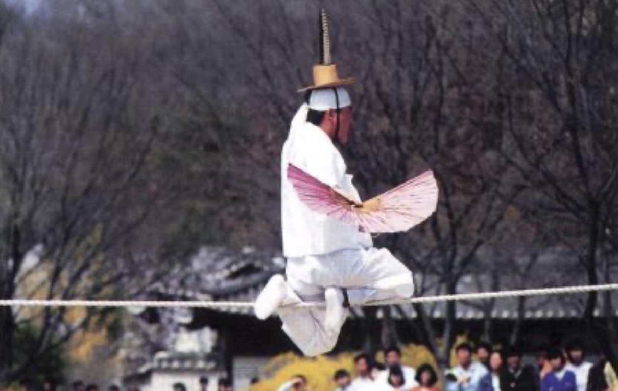 곡예의 일종으로, 줄 위에서 균형을 잡고 다양한 동작을 펼치는 예술입니다. 줄타기는 곡예사와 관객 간의 소통이 중요하며, 전통적인 곡예 기술을 이어가는 예술입니다.
