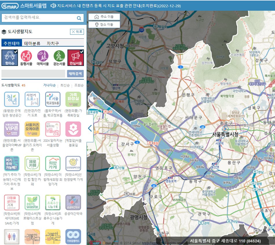 스마트 서울맵 —> 도시생활지도 -> 안심서울 -> 폐의약품 전용 수거함 위치 (맨 아래 위치)