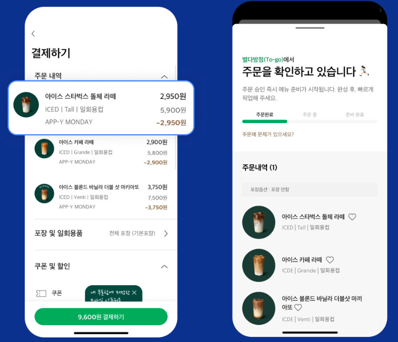 ※ 사용 방법 : 스타벅스 회원이 앱으로 사이렌 오더로 제조 음료 주문 시 50% 할인