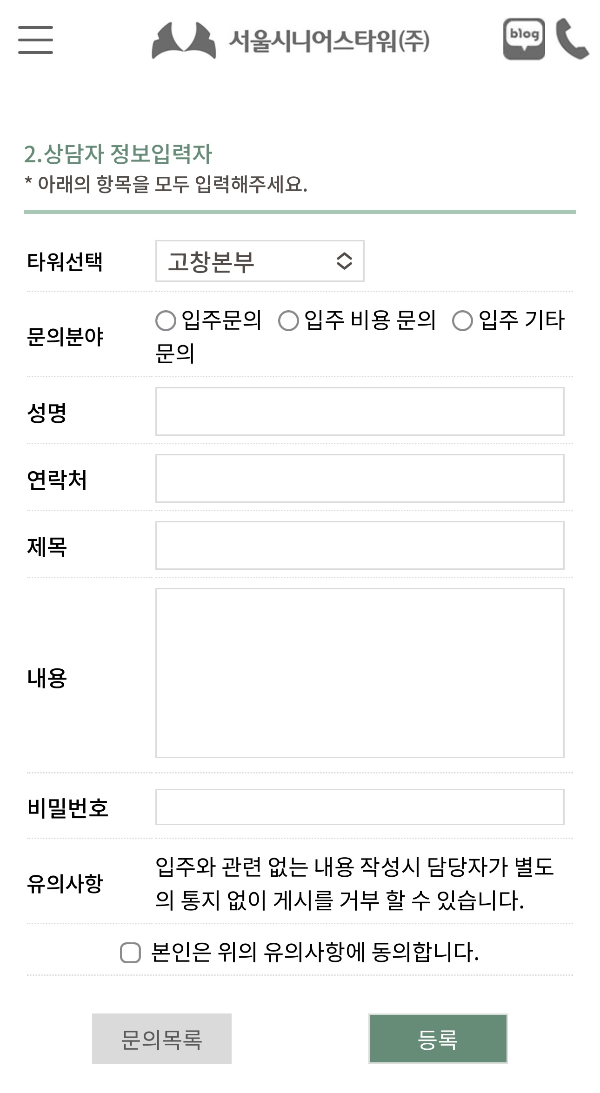*홈페이지에서 아래 양식에 작성하셔서 입주 문의 하실 수 있습니다.