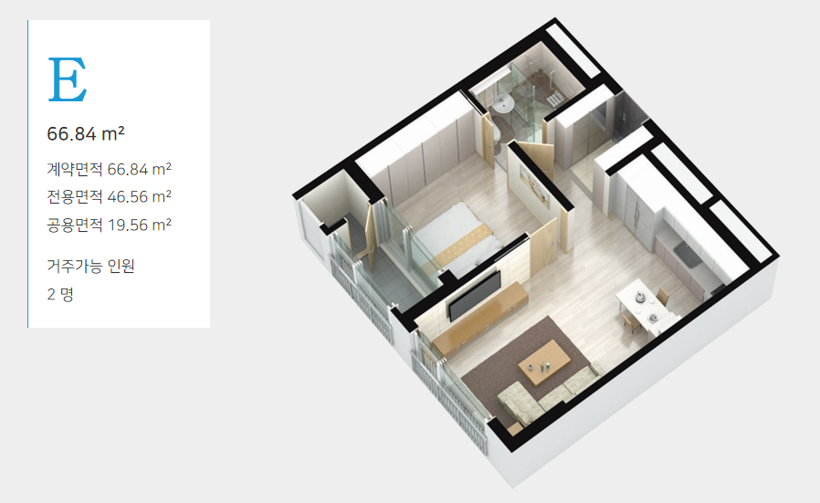 E타입 20평형 ( 방 1, 거실 1, 화장실 1)
