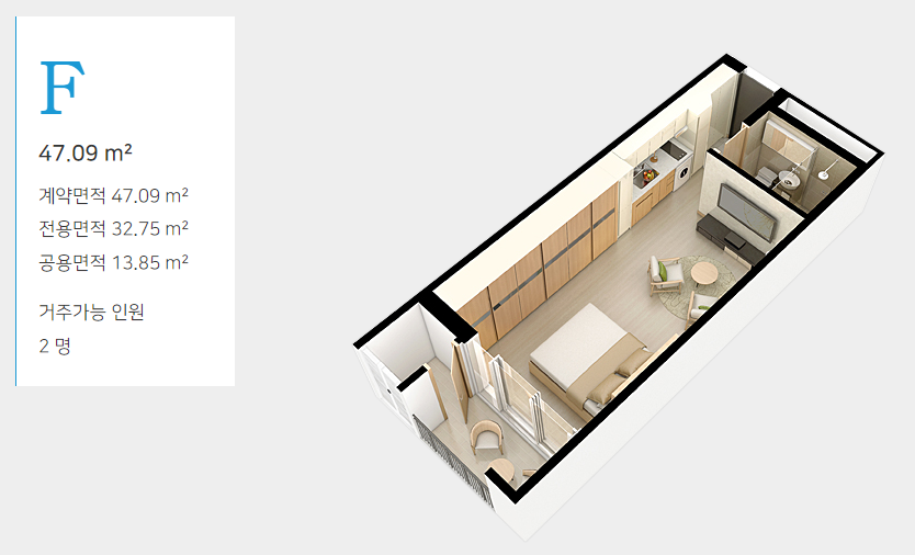 F타입 14평형 ( 원룸타입, 화장실 1)
