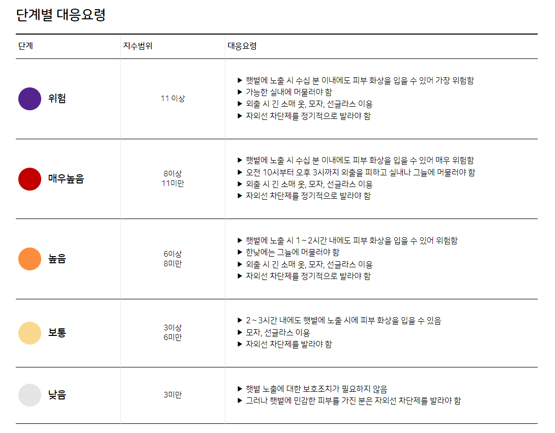 자외선 단계 및 단계별 대응요령