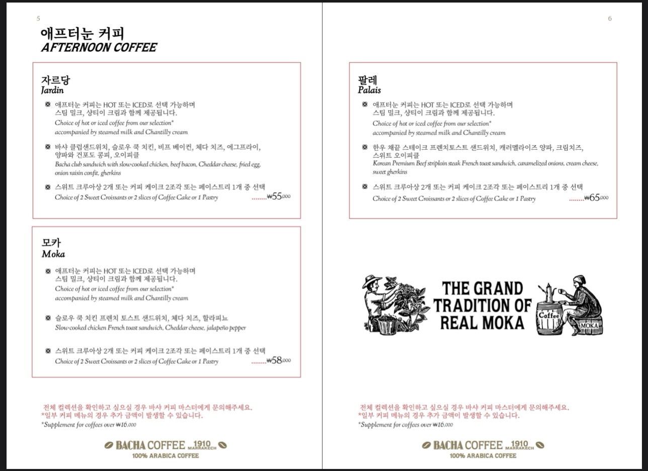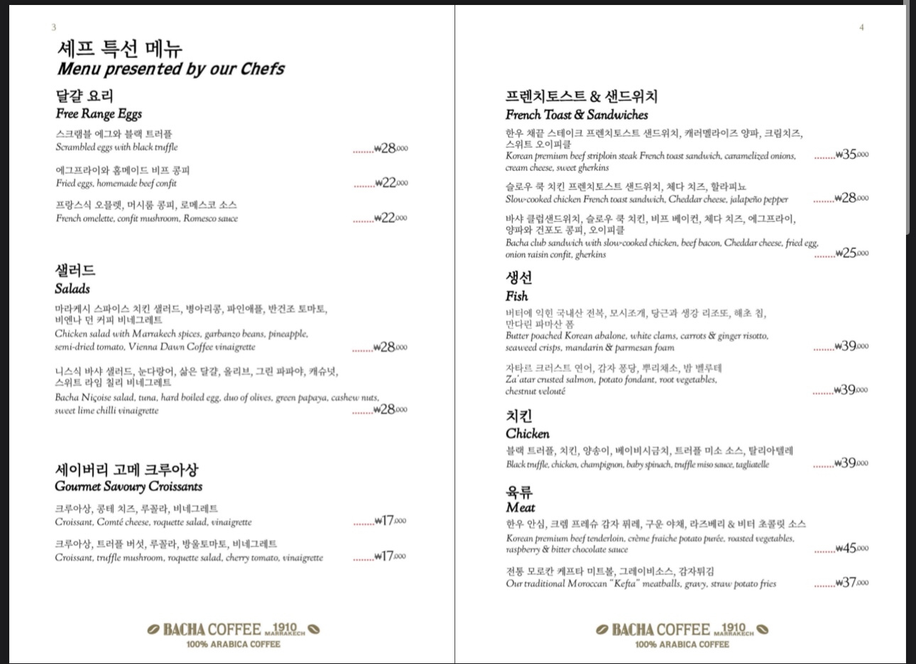 바샤커피(Bacha Coffee) 1910년에 모로코에서 시작된 커피로 이 브랜드는 고품질의 아라비카 원두를 사용하며, 특히 프리미엄 싱글 오리진 커피로 유명합니다.