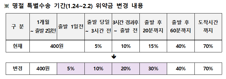 * 명절 특별 수송기간(1.24~2.2) 위약금 제도 강화