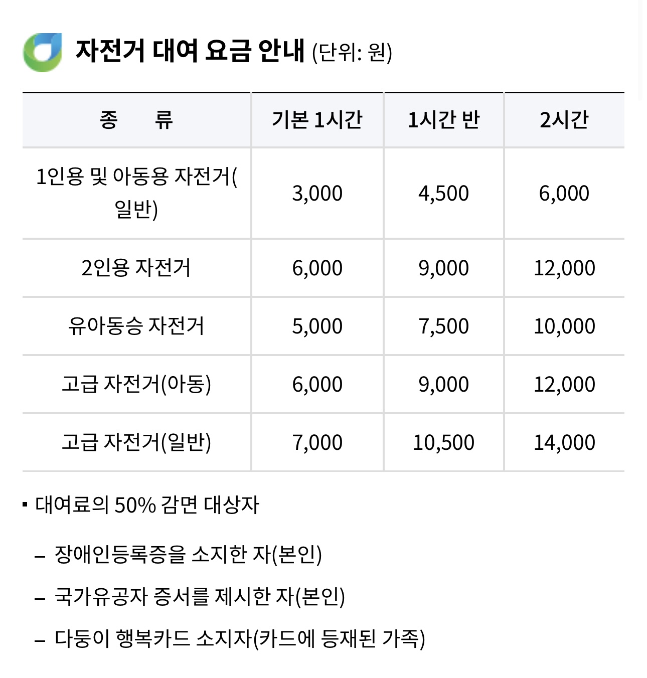 4. 대여증을 직원에게 학인 후 자전거 대여