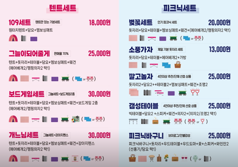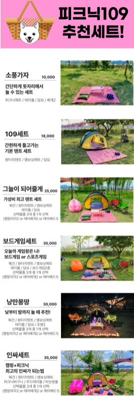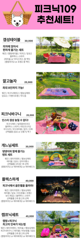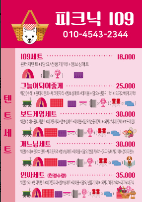 가장 대표적인 곳은 피크닉 109로 한강공원에 6개의 지점이 있습니다.