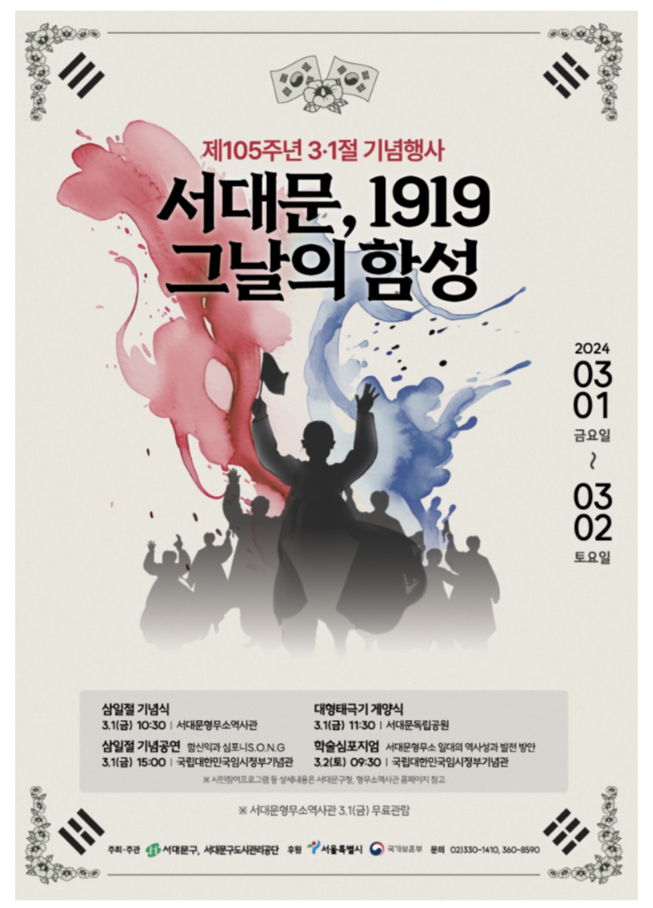-삼일절 기념식 : 3.1(금) 10:30 서대문형무소역사관