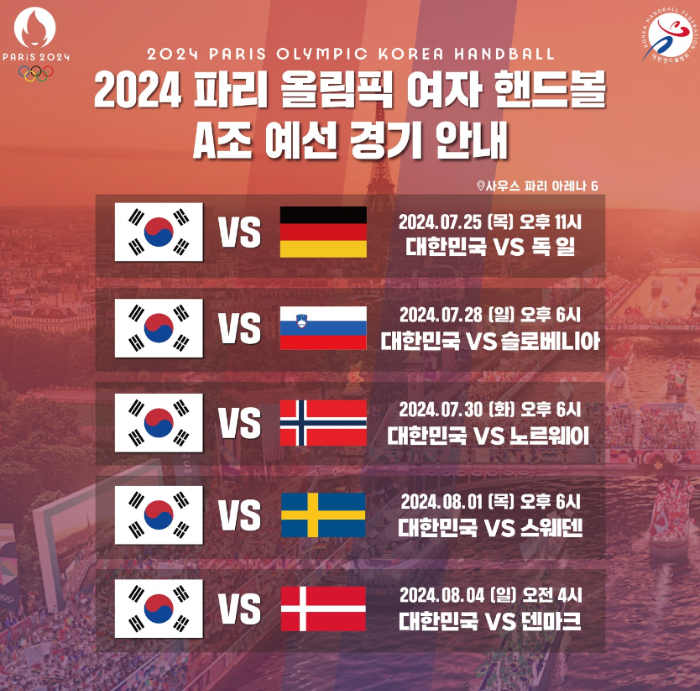 2024 파리 올림픽 유일한 구기 종목 핸드볼 일정
